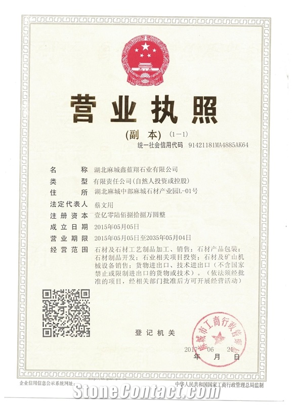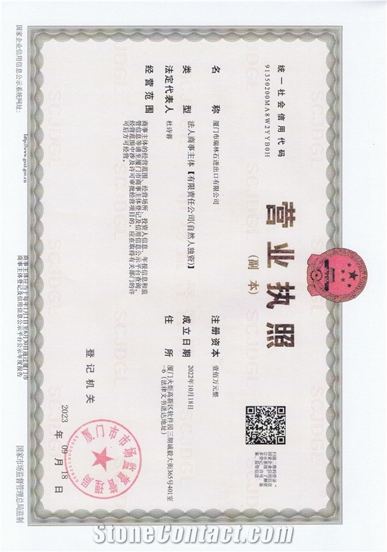 The supplier's company certificate has been verified by StoneContact.Com.